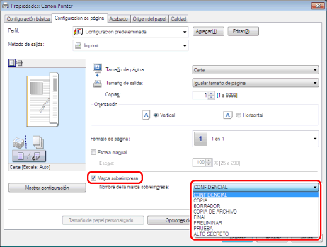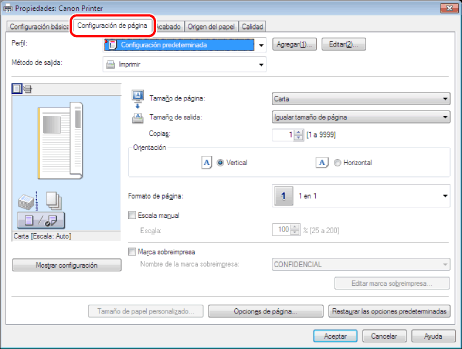 La pantalla puede variar según el sistema operativo y también en función del tipo y la versión del controlador de impresora.