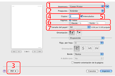 Selecciona la impresora que se utilizará entre las que se hayan añadido previamente al panel [Impresión] del cuadro de diálogo [Impresión y Fax] en [Preferencias del Sistema].