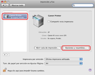 Abra [Preferencias del Sistema] → haga clic en [Impresión y Fax].