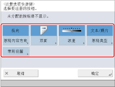 可以在“复印”屏幕的[选项]中为常用的功能创建快捷键。也可以直接恢复在[常用设置]中注册的按钮。