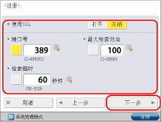 如果为<认证信息>选择[使用(安全认证)],而“设置/注册”的[参数选择]中的[日期/时间设置]与LDAP服务器上的时间设置不同,则本机可能无法连接到LDAP服务器。
