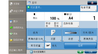 此处显示作业和复印操作的进度以及设备和耗材的状态。此外,根据所使用的登录服务,可能显示“部门识别码”或用户名。