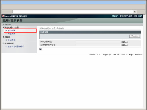 如果MEAP应用程序未随附“授权存取号”,将由“MEAP应用程序”提供程序提供授权文件。不需要本节介绍的授权密码和授权文件。有关详细信息,请参阅各MEAP应用程序随附的手册。