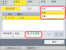 在“发送作业列表”上打印传真、电子邮件、互联网传真和文件服务器发送列表。