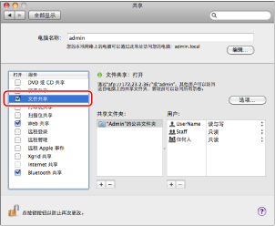 可以共享[Public]下[Drop Box]中的文件夹。可以按如下方式访问[Drop Box]:在[转到]菜单中,单击[Home]→[User]→选择登录用户名→[Public]→[Drop Box]。
