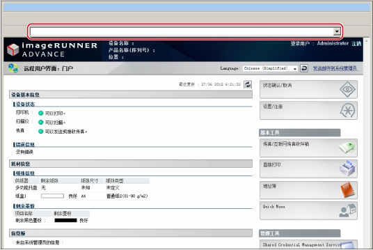 根据机器的型号和安装的可选产品,屏幕可能有所差异。