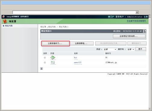 单击[注册新接收方]。显示注册新接收方的屏幕。