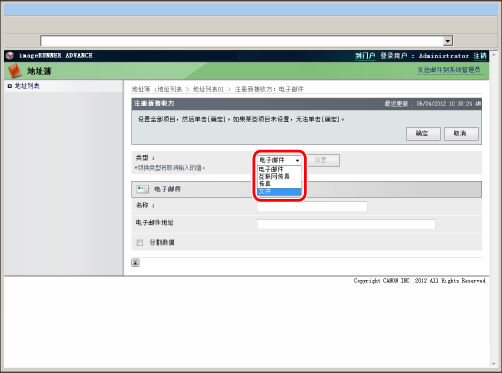 可以使用触摸面板显示屏幕或“远程用户界面”执行此步骤。使用“远程用户界面”可以轻松注册接收方。