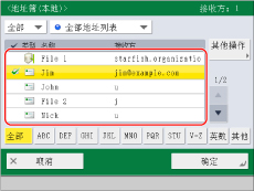 单击[地址簿]→“地址列表”屏幕上的[地址列表01]。