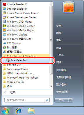 ](开始)→[所有程序]→[Color Network ScanGear]→[ScanGear Tool]。