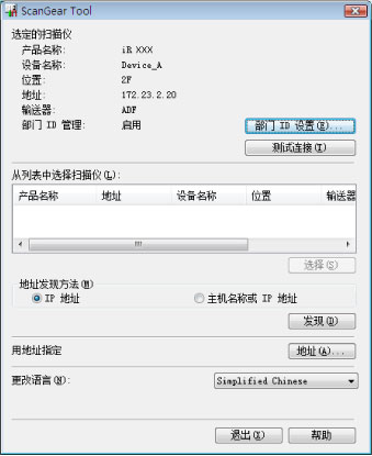 也可以通过单击[地址]并输入打印机的IP地址或主机名指定要使用的扫描仪。