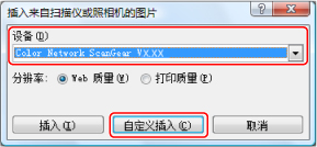 从[设备]选择Color Network ScanGear→单击[自定义插入]。