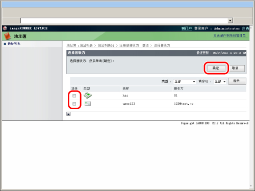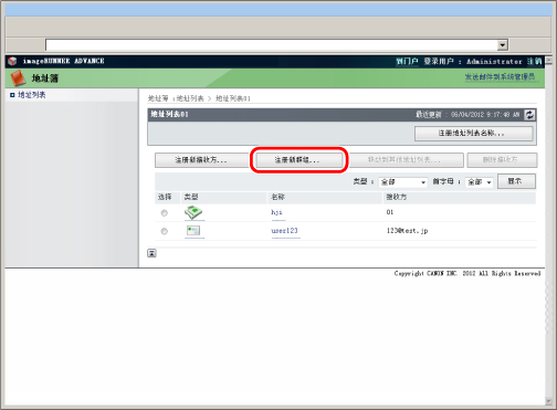 访问“远程用户界面”→单击[地址簿]→从“地址列表”页中选择地址列表。