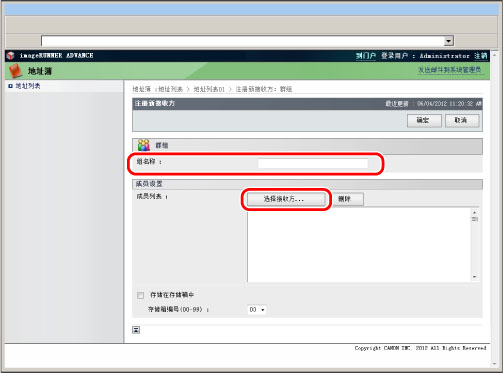在[组名称]中输入“Group 1”→单击[成员列表]的[选择接收方]。