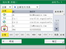 在“主菜单”屏幕上按[扫描后发送]→[地址簿]→从下拉列表选择[