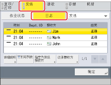 按[状态确认/取消]→[发送]→[日志]→检查电子邮件是否已成功发送。