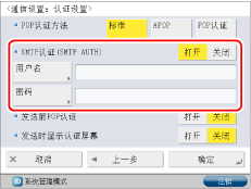 如果电子邮件服务器的环境要求SMTP认证,请将此设置设为“打开”并输入用户名和密码。