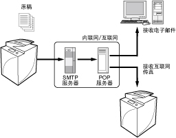 (设置/注册)→[功能设置]→[发送]→[电子邮件/互联网传真设置]→[使用“通过服务器发送”]。