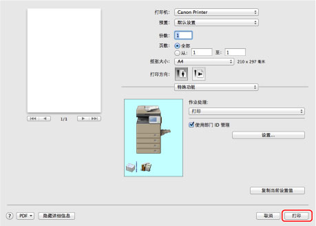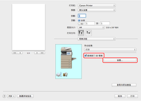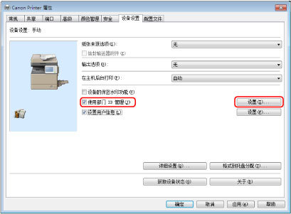 如果在“本机上的设置”的步骤2中选择了[打开],则“部门识别码管理”已设置。