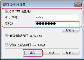 选择[打印时确认部门ID/PIN]可以设置存储在设备中的信息和认证时间。