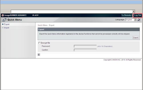 文件保存后,单击[Log Out](注销)。