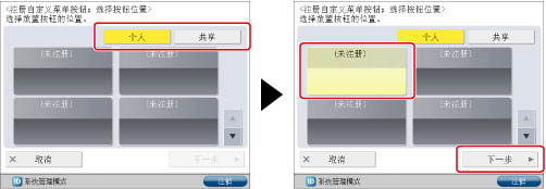 根据“自定义菜单”功能的存储器使用量,可以注册的“个人”按钮数可能少于最大值。