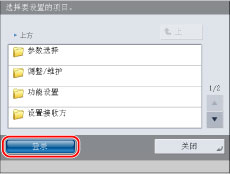 对于普通用户,“设置/注册”屏幕上的某些项目可能会受到限制。触摸面板显示屏幕上用户没有操作权限的项目变灰且无法选择。“远程用户界面”上不显示用户没有操作权限的项目。