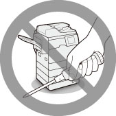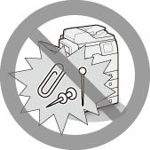 请小心不要让液体溅入本机或让任何异物(如纸夹或装订针)掉入本机内。如果异物与本机内的电气部件接触,可能会引起短路并且导致火灾或触电事故。