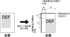 增加此设置值使图像沿X轴方向向纸张的右边移动。减小此设置值使图像沿X轴方向向纸张的左边移动。