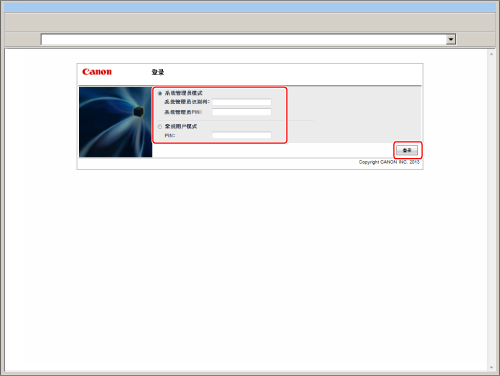 如果设置了Default Authentication和“部门识别码管理”,请输入“部门识别码”和密码登录。