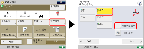 如果[将PDF格式更改为PDF/A]设置为“打开”(See "将PDF文件格式更改为PDF/A.")
