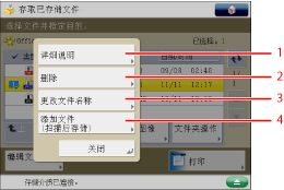按下可以显示用于添加文件或显示文件的详细信息、删除或重新命名所选文件的菜单。