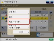 如果选择多个文件并按[更改文件名称],则选定(加亮)文件成为要更改其标题的文件。