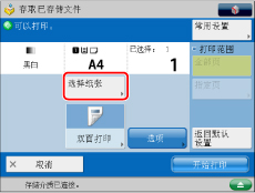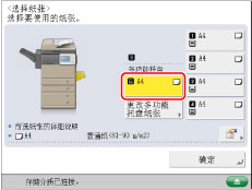 如果预先将信息存储到本机中,则添加到每个纸盒中的纸张类型的图标就可以显示在纸张选择屏幕上。(See "注册/编辑自定义纸张类型.")