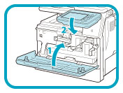 逆时针转动墨粉盒锁定手柄,使手柄上的箭头标记与其轴相对。
