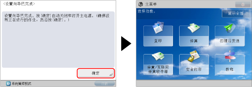 (设置/注册)启动“设置向导”,请确保当前没有正在处理的作业,然后按[确定]。 |