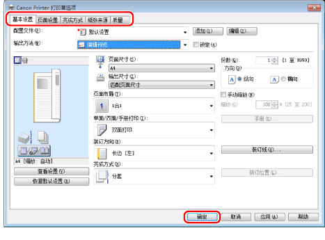 在打印机设置屏幕中指定所需的设置→单击[确定]。