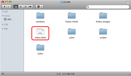 在安装文件夹中,双击[Documents] →[simplified_chinese] → [Guide] → “index.html”图标。