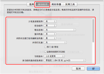 如果使用的是Mac OS X 10.7或更早版本,请验证所使用的打印机相对应的驱动程序被选为[使用]。关于与使用的打印机相对应的驱动程序名称,请参照Readme文件。