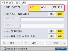 <POP 인증방식>에서 POP 서버가 지원하는 인증 방식을 선택합니다.