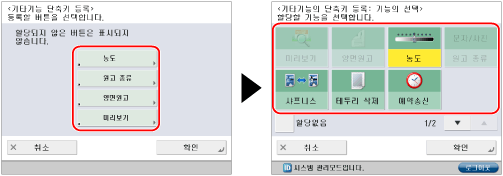 팩스 화면에 표시되는 단축키에서 설정을 등록할 수 있습니다. [기타 기능]에서 원하는 키를 4 개까지 등록할 수 있습니다.