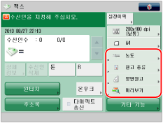 이 모드는 팩스 기능을 사용할 수 있을 때 설정할 수 있습니다. 팩스 기능을 사용하는 데 필요한 선택 품목 제품에 대한 자세한 내용은 "각 기능에 필요한 선택 품목 제품."을 참고하십시오.