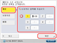(숫자 키)를 사용하여 시작 시간을 입력하고 → [확인]을 누릅니다.