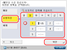 (숫자 키)를 사용하여 종료 시간을 입력하고 → [확인]을 누릅니다.|