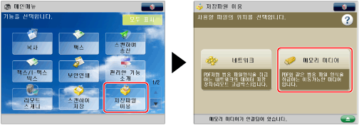 [저장파일 이용] → [메모리 미디어]를 누릅니다.