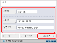 각 항목에 대해 <LDAP서버 버전과 문자코드>를 선택하고 →[다음화면]을 누릅니다.
