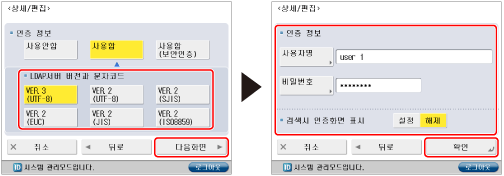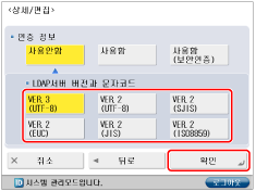 각 항목에 대해 <LDAP서버 버전과 문자코드>를 선택하고 →[확인]을 누릅니다.