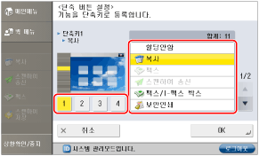 단축 버튼이 단축키 번호 위치에 표시됩니다. 단축키 3만 등록하면 단축키 1, 2, 4의 위치에 아무것도 표시되지 않고 단축키 3 위치에만 버튼이 표시됩니다.