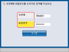 다시 조작하려면 부문 ID 및 비밀번호를 다시 입력해야 합니다.