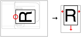 원고대의 스캔 영역과 피더가 원고를 세로로 세트하기에 충분해도 A5와 같은 원고를 가로로 세트하십시오. 원고를 세로로 세트할 경우 [원고방향]을 [세로]로 선택하십시오.